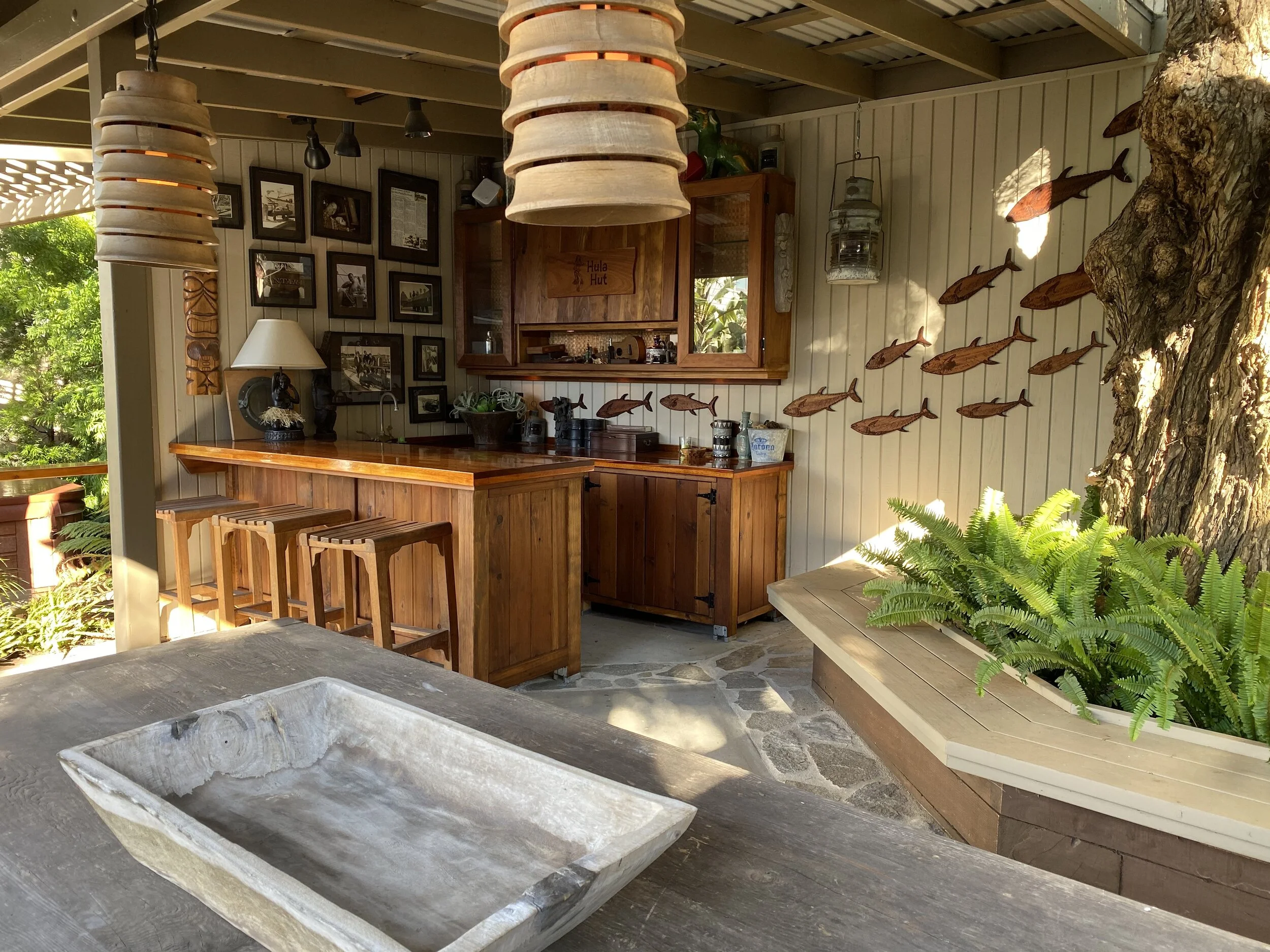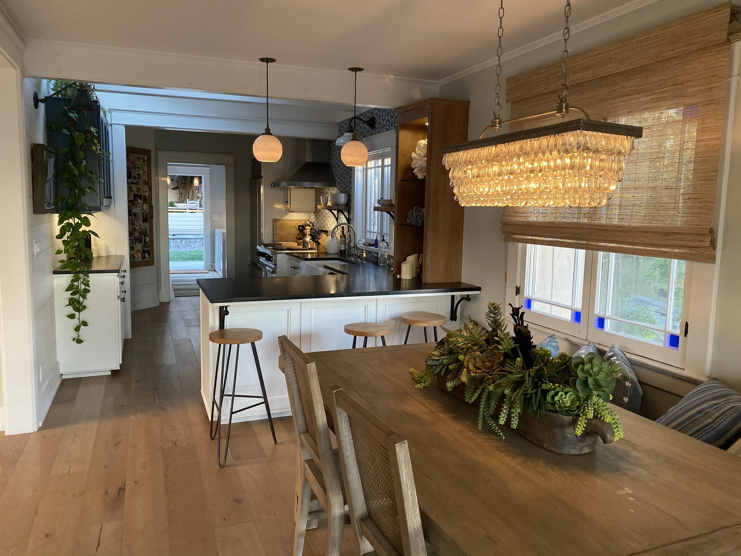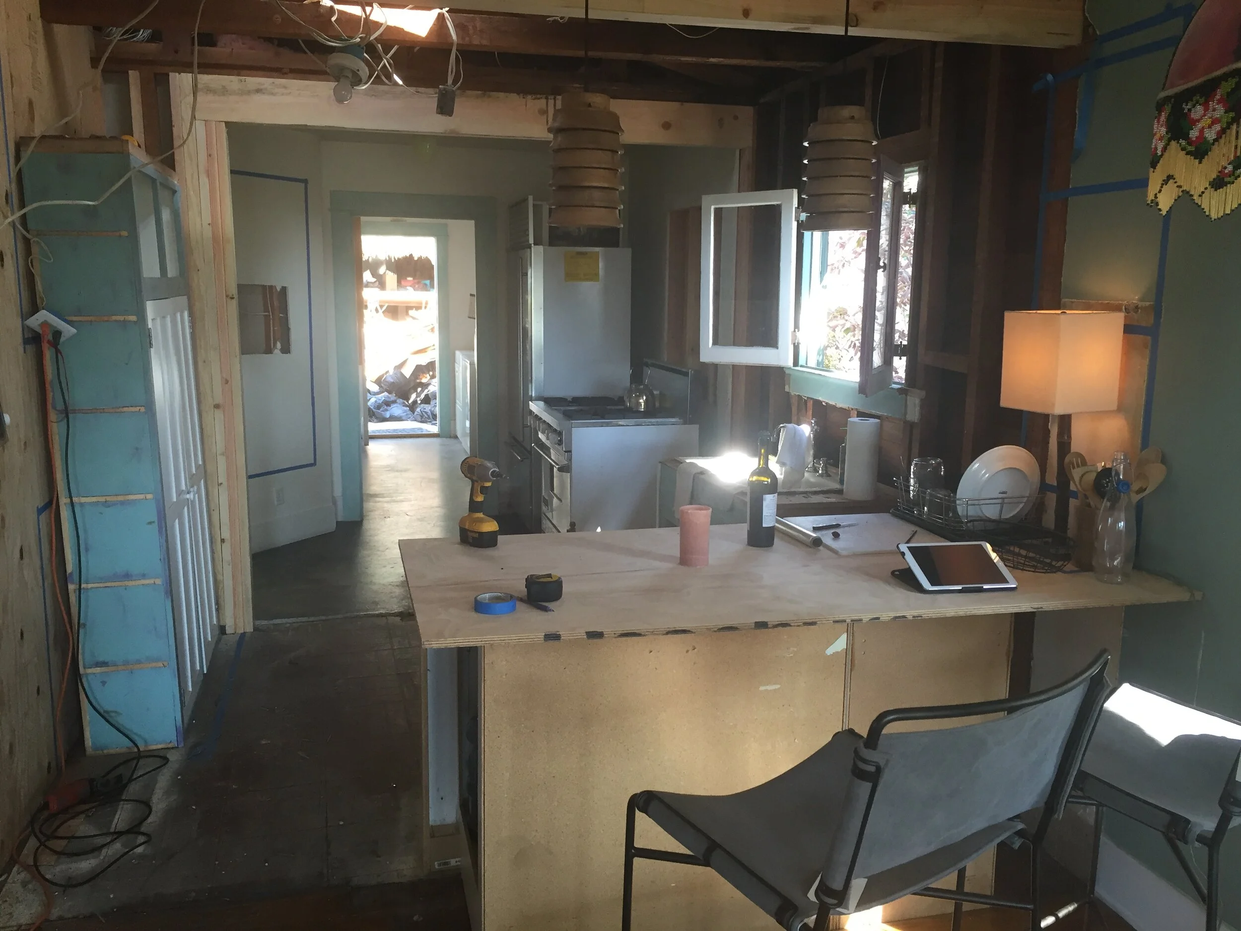 This is my own renovation. I purchased this home from a friend of a friend who said that he was about to sell to a developer to tear down - he said it had a nice view and a tiki bar- that was all it took for a look-see. It will be turning 100 years old soon so it needed some work. I fell in love with its character despite some layout issues like it had the sink, range and refrigerator all in adjacent but different rooms. Because it is a small house I opened up walls to create defined but shared spaces that make it feel bigger - from the dining room you can see the full width and length of the home. To increase natural light, I raised the ceiling with new skylights and added large french doors that lead out to a new garden. It is important to design for the way you want to live and this house fits my barefoot lifestyle.